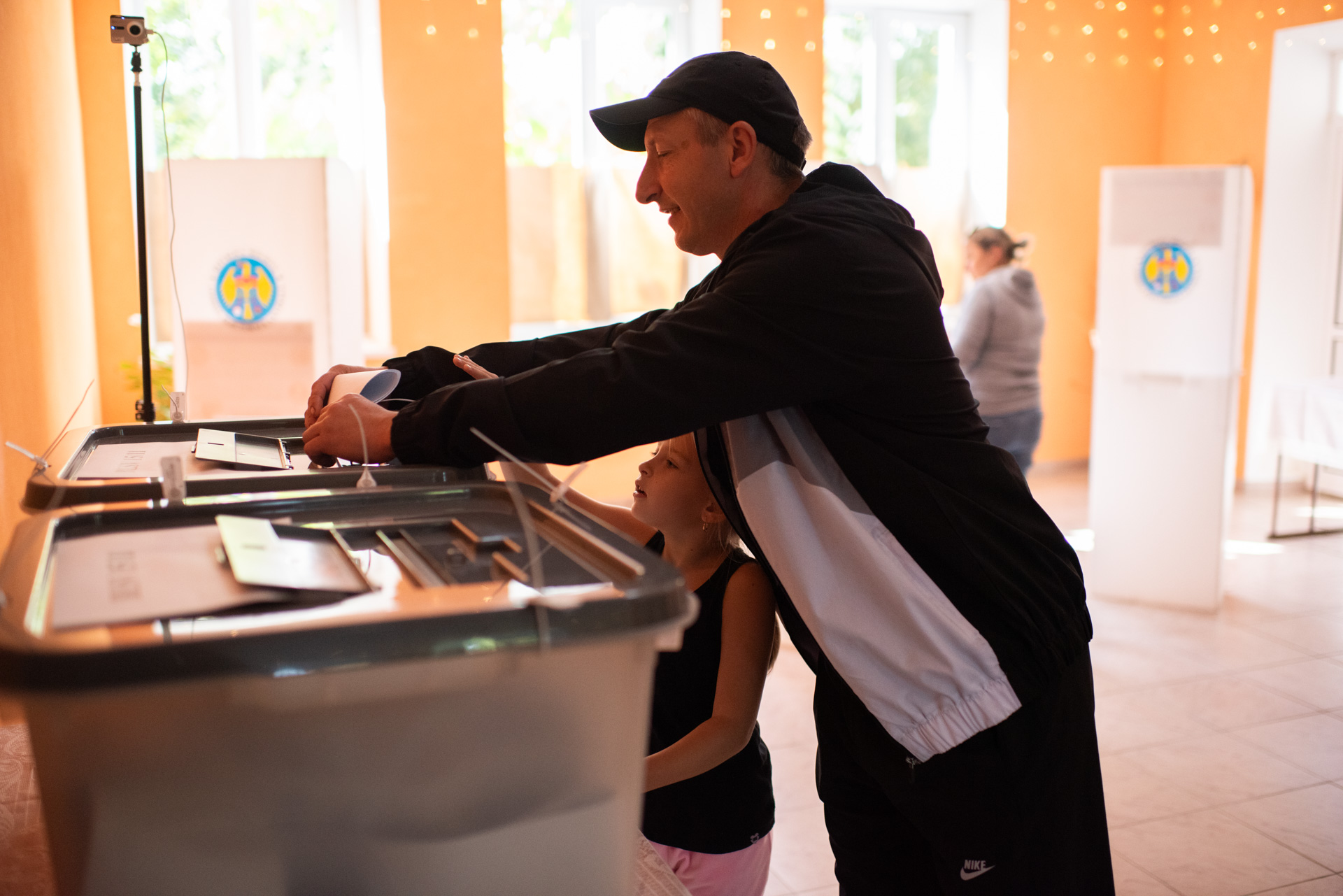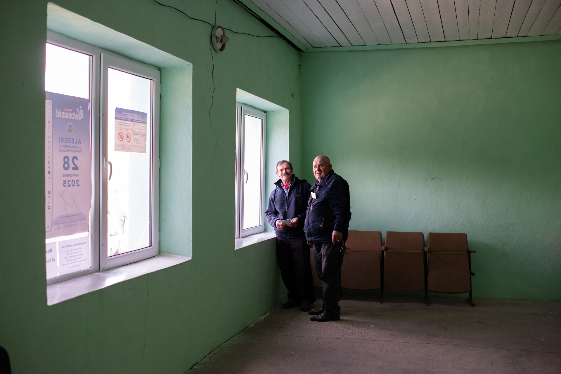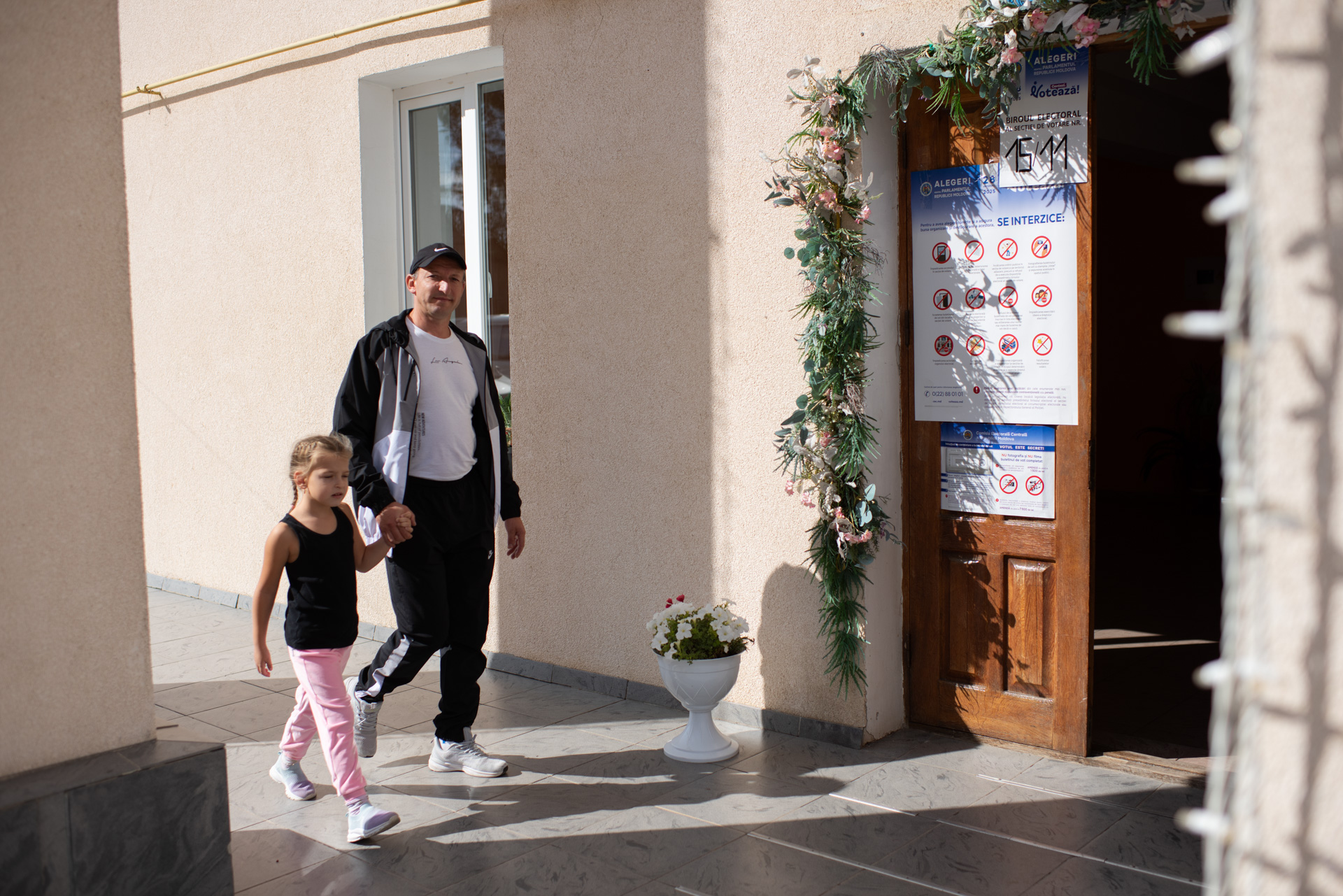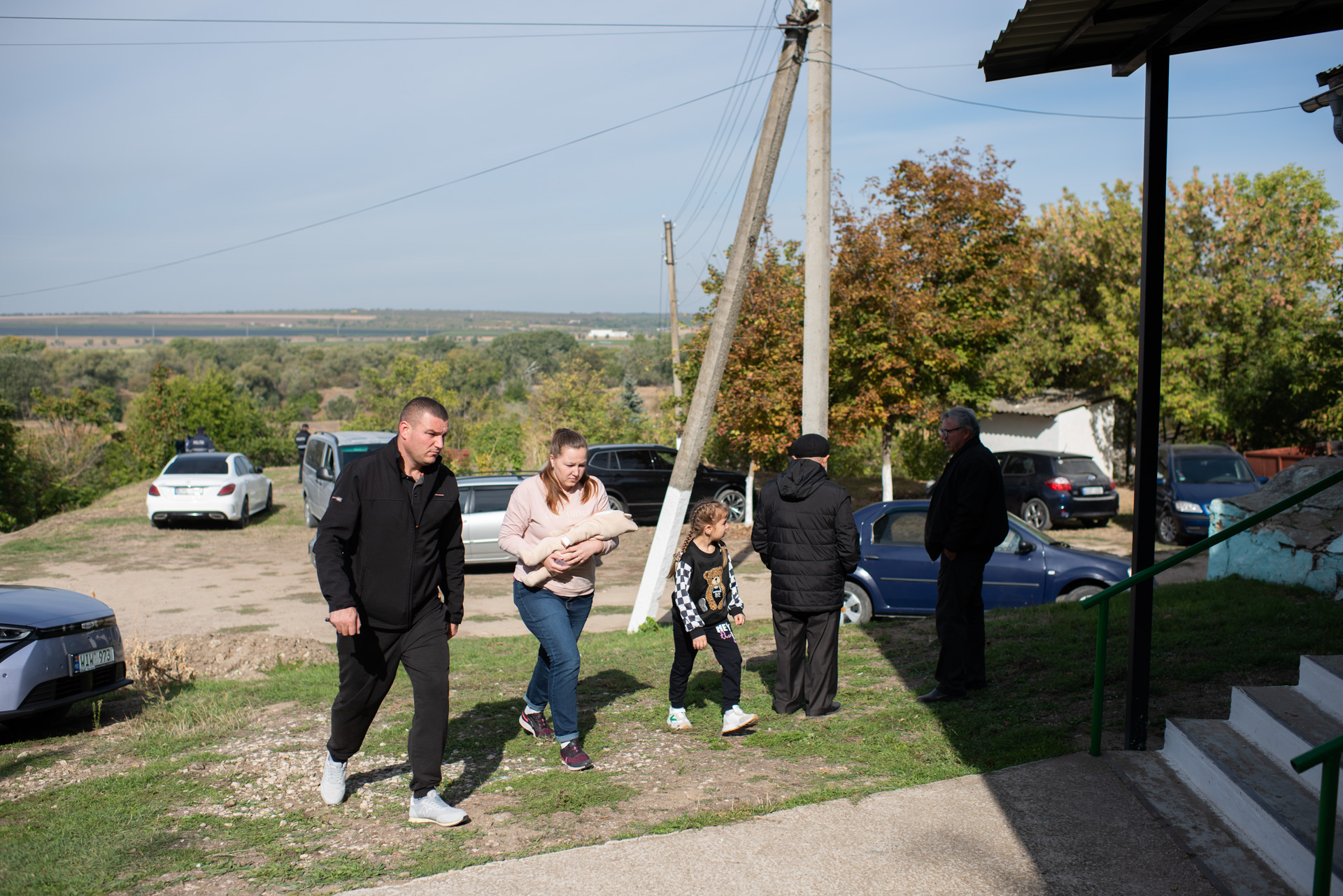 Din Casa de cultură răsună muzică pe care de obicei o auzi la nunți. Așa au decis organizatorii să înveselească sătenii, într-o zi însorită de alegeri. Sergiu a venit cu fiica lui: „Pentru ea sunt deja a doua alegeri! Am votat pentru liniște și pace, dacă înțelegeți la ce mă refer…”