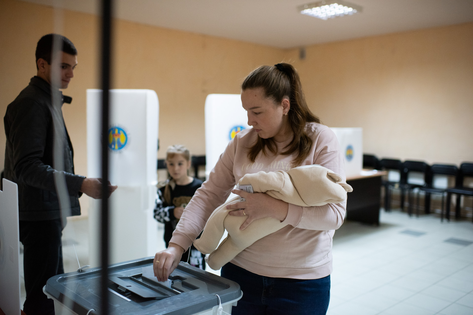 La Casa de cultură e aglomerație, care se transformă treptat într-o coadă. Întrebată pentru ce a votat, Polina, o femeie de 73 de ani, răspunde, sprijinindu-se de ghidonul bicicletei: „Pentru pace și prosperitate”. Acesta va fi cel mai des răspuns al zilei. Oamenii votează partide diferite, dar așteaptă același lucru – să le fie mai bine.