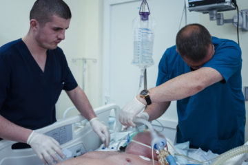 На фоне не прекращающихся сигналов мониторов медоборудования из одной палаты доносится голос священника – он читает молитву и размахивает кадилом над пациентом....