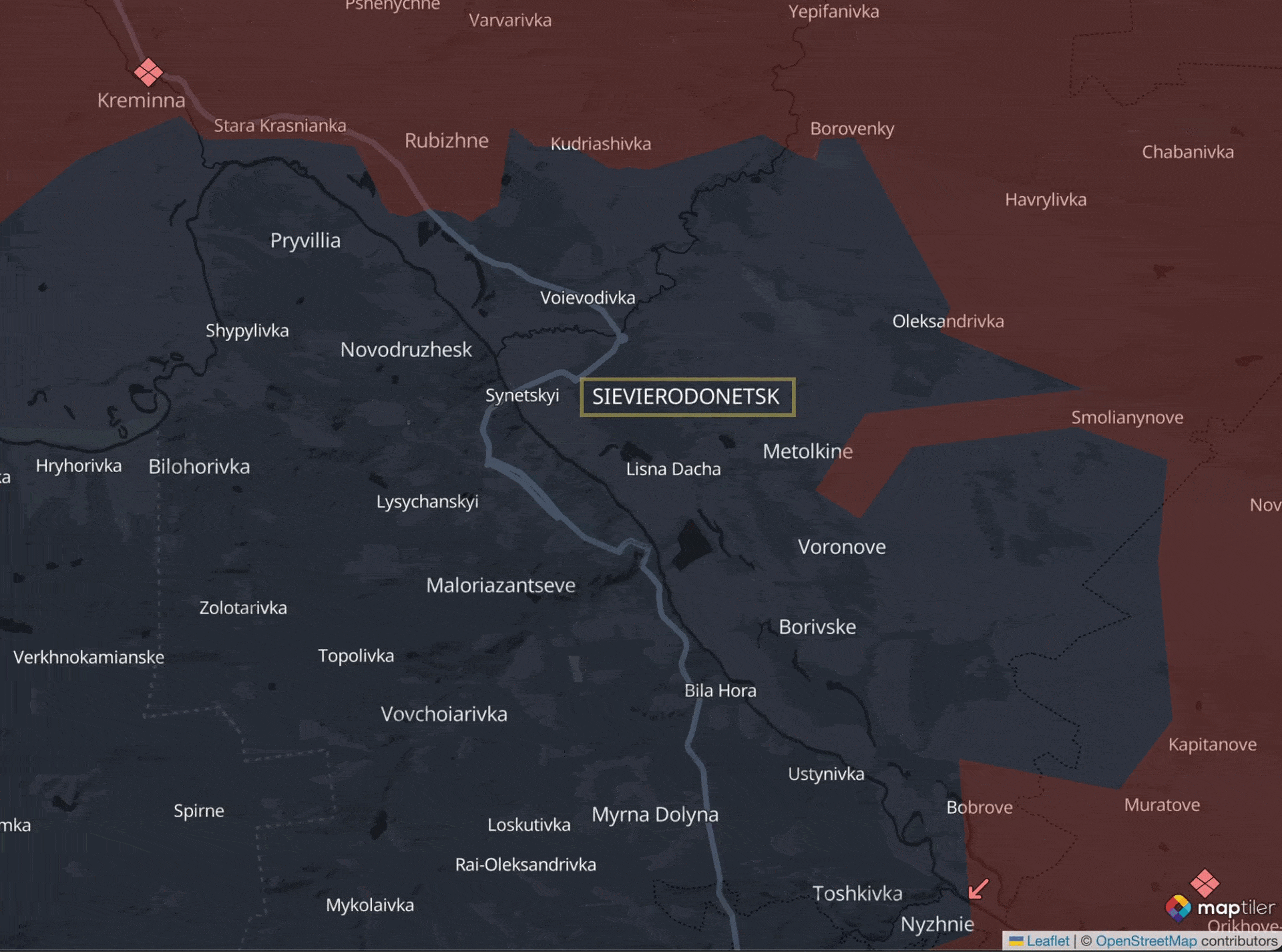 Evoluția liniei frontului în jurul or. Sievierodențk, în perioada 1 mai-30 iunie 2022. (Sursa: Capturi foto de pe platforma DeepStateMap.live / GIF:Oameni și Kilometri)